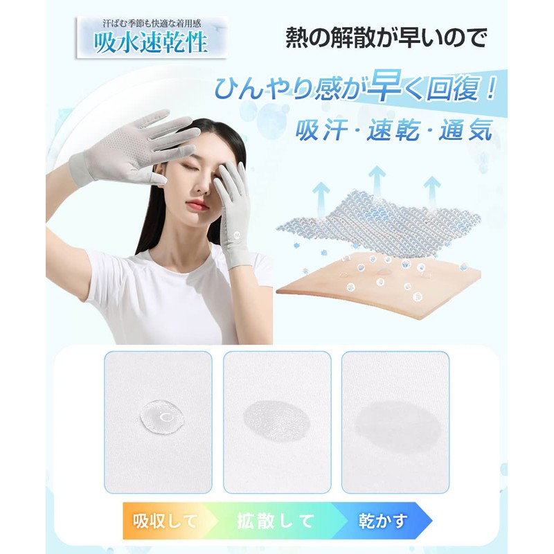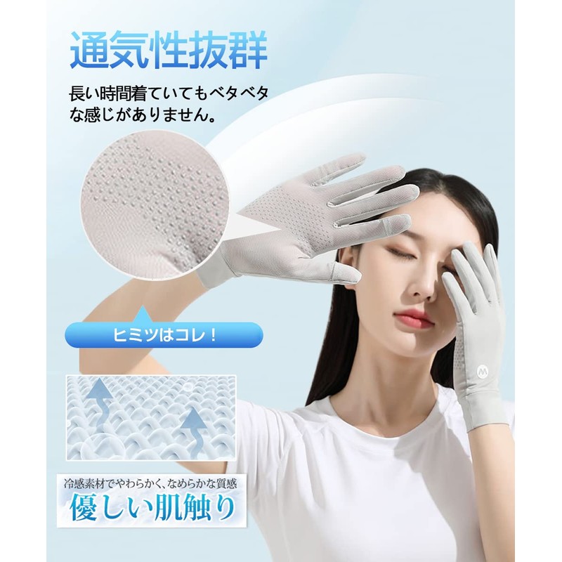 MEPOKI Women's Gloves, Thin UPF50+, Mesh Palm Ventilation Design, Keeps You Dry Even in Summer, Cool to the Touch, Supports 2 Fingers on the Right Hand, Touch Panel, UV Gloves, Sun Protection Gloves,