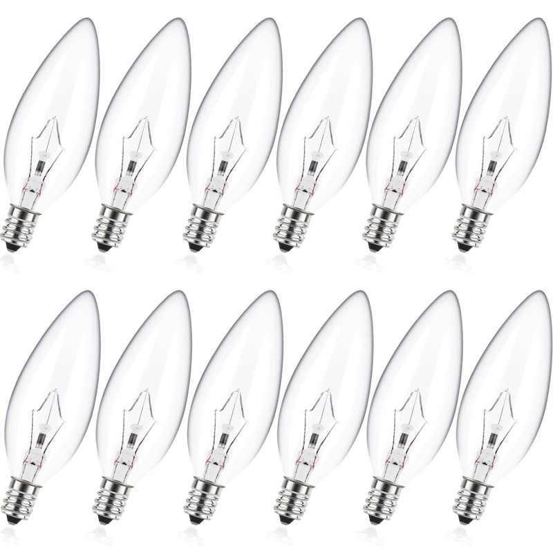 - ?Light Bulb Specifications B10 e12 candelabra screw base bulb, 110V-120V/60 Watts/600 Lumens/Dimmable/2500K warm white clear incandescent bulb.