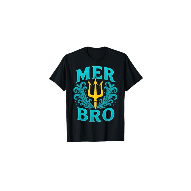 Mer Bro Ocean Trident Waves With Aqua Lettering T-Shirt