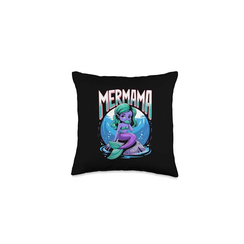 Mer Mama Mermaid Tail Design Throw Pillow