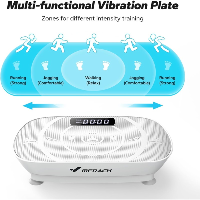 - 【Efficient Fat Burning】Step onto MERACH vibration plate exercise machine and sculpt your ideal figure instantly! The vibration plate stimulates muscles through high-frequency vibrations, inducing additional muscle contractions and activation. This helps burn calories and fat rapidly, aiding in shedding excess weight faster than running, helping you achieve your fitness goals swiftly.