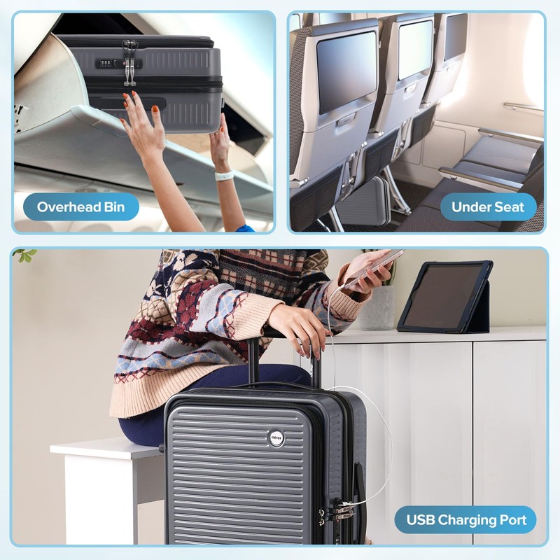 - 【USB-A Charging Port】Merax luggage comes with a built-in charging port, so you can charge it at any time to keep the battery fully charged for business trips. And save you the trouble of holding a power bank while walking. (Note: power bank is not included in the set)