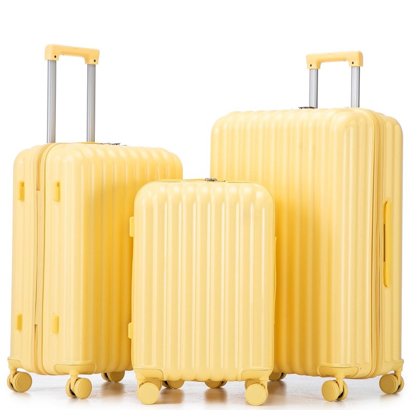 Merax 3 Luggage Sets, ABS Hardshell Suitcases Spinner Wheel with Combination Lock, Vertical Stripes Yellow, 20/24/28 Inch
