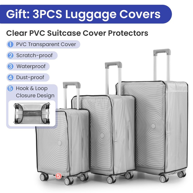 - [Packing Include] 3-piece luggage set (20/24/28) and 3-piece clear PVC suitcase lid to protect luggage.
