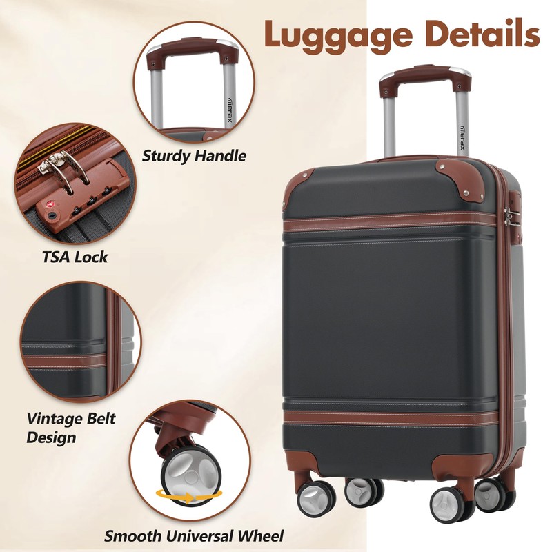 Merax Carry On Luggage 20 Inch Suitcase with Spinner Wheels, Hard Shell Vintage Luggage Set with Duffel Bag (Black)