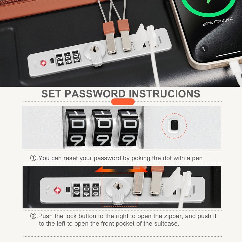 - Smart Convenience Features: The 20-inch carry-on luggage is equipped with a USB interface, allowing you to charge your mobile devices anytime, anywhere. Additionally, the integrated hook and cup holder design make it more convenient to use while traveling.
