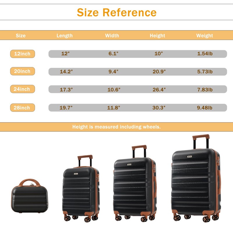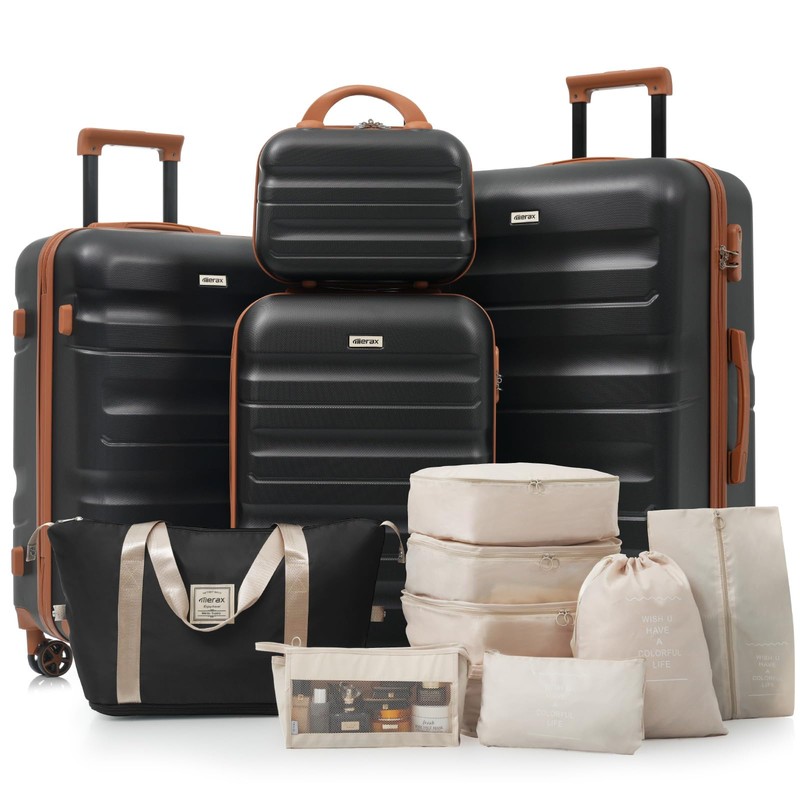 Merax Luggage Set 13 Piece, Hardshell ABS Suitcases with 8 Silent Spinner Wheels, Durable and Lightweight Travel Luggage for Family Trips, Black Brown
