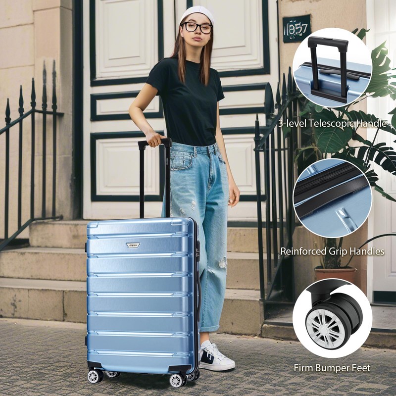 - 【High Quality Luggage Set】The lightweight and durable shell is made of high-quality PC+ABS material. The PC surface adopts a special brushing process to present irregular brushed lines, which not only increases the beautiful glossiness, but also resists scratches and prolongs the service life.