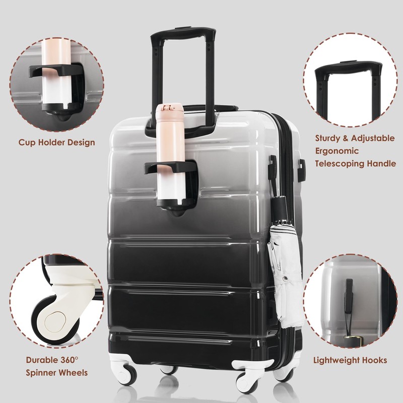 Merax Luggage Set of 3 with 20-inch Carry On USB Port Cup Holder ABS+PC Hardshell Spinner Wheels TSA Approved Durable Expandable Suitcase for Travel Men Women (1, Black and Grey, 20"+ 24"+ 28")