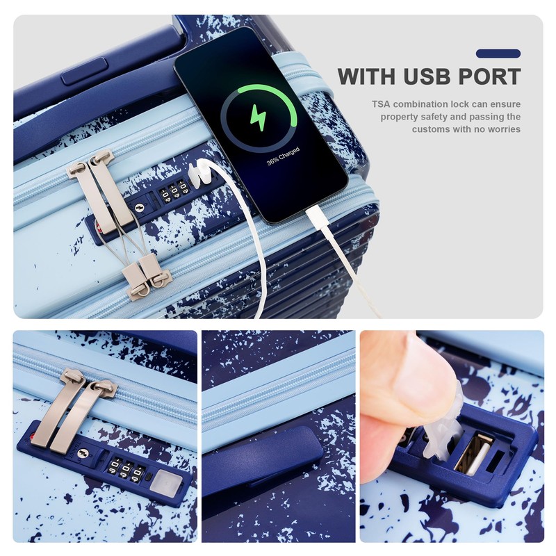 - 20"and 24" luggage with front pockets, divided warehouse design, you can carry laptops and personal items, separate storage, easy to switch, the whole box with gradual color matching, more bright and fashionable, to your life to add beautiful scenery!