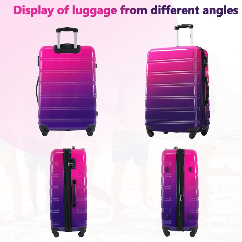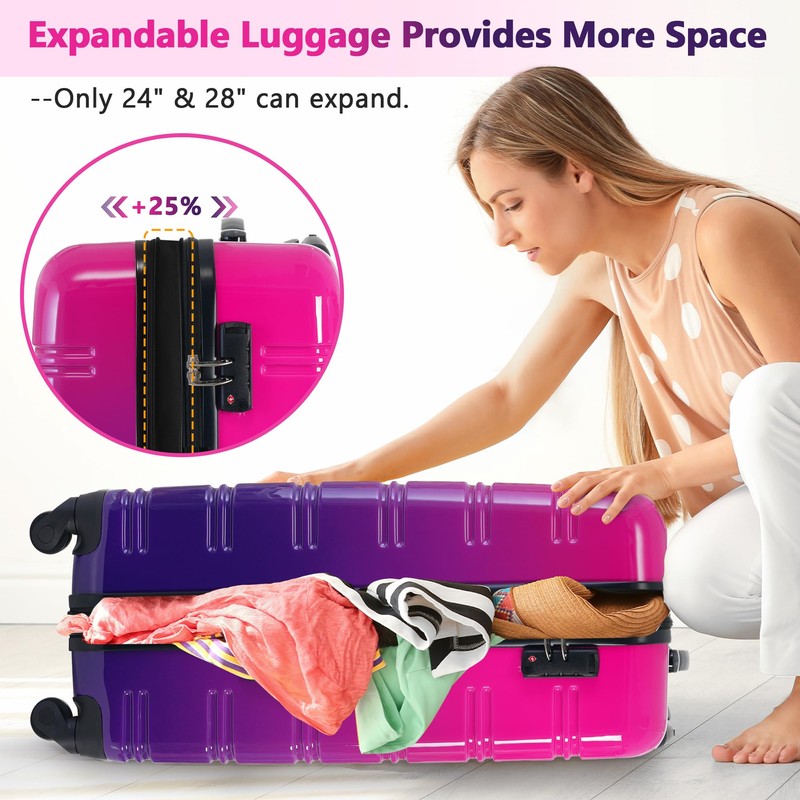 Merax Suitcase Set, Hardshell Luggage Sets 3 Piece with Spinner Wheels, Expandable Gradient Color Suitcase with TSA Lock Lightweight 20" 24" 28", Purple and Pink