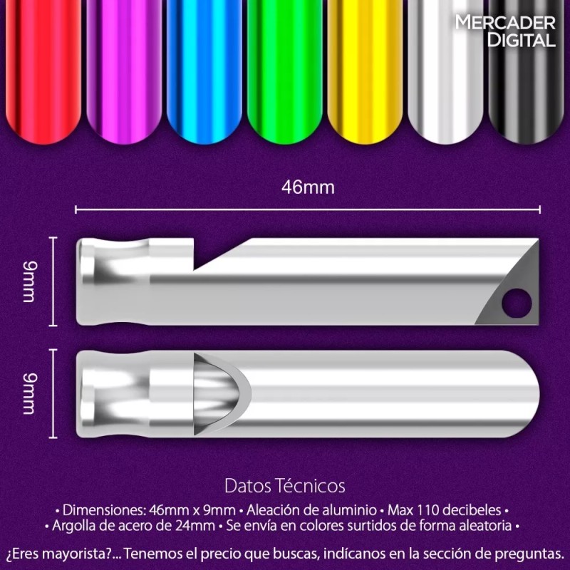Tiene un sonido dulce y potente que se puede escuchar a grandes distancias, su cuerpo de aluminio hace de él, un silbato ultraligero y extremadamente resistente a impactos. Es ideal para excursiones, camping, pesca, senderismo o cualquier actividad al aire libre.