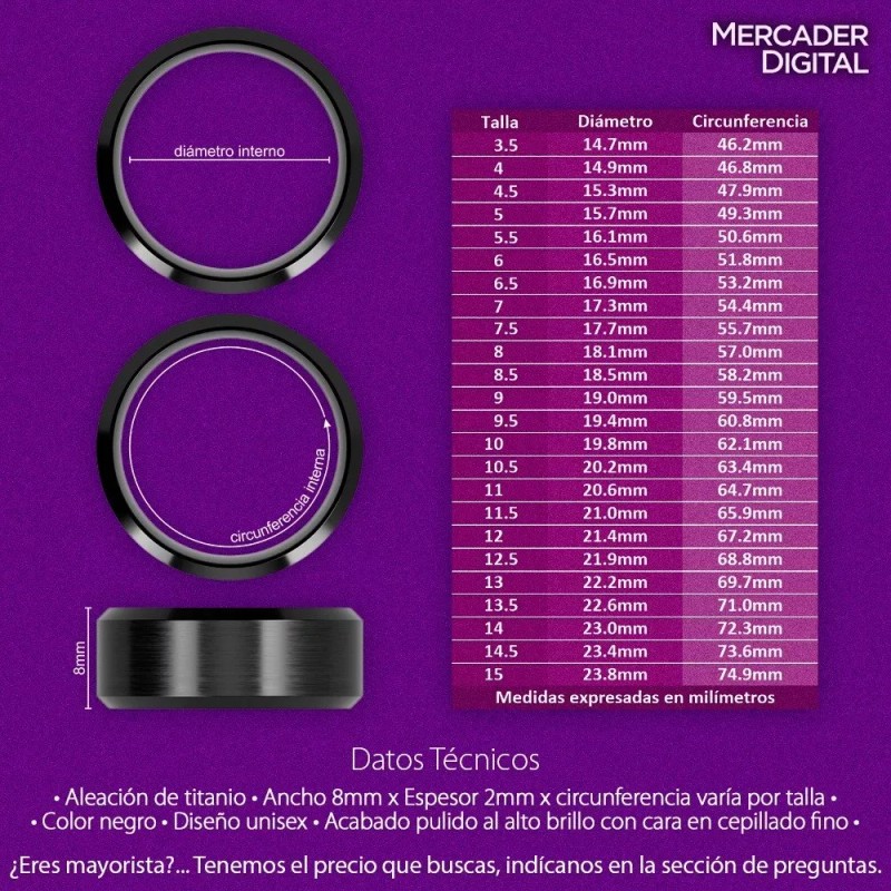 Mercader Digital Anillo De Titanio Negro Unisex Clásico Calidad Resistencia