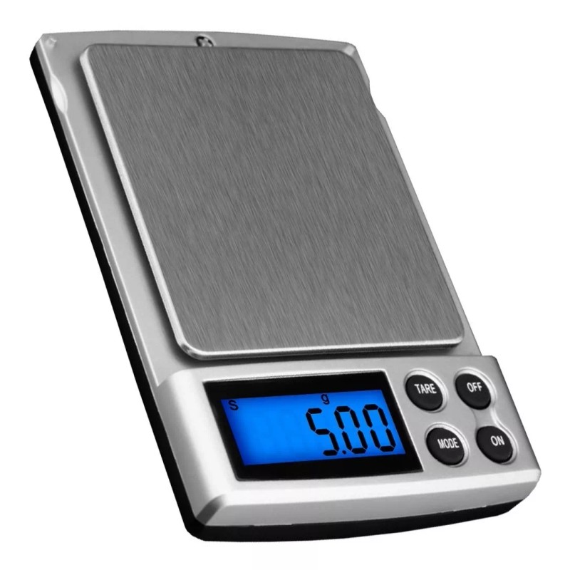 Portable, precisa y segura, cuenta con una capacidad de pesado de 1000 gramos o 1 kilogramo y con una precisión de 0.1 gramos o una décima de gramo, calibración automática al ser encendida, tiene sensor de alta precisión y función tara.