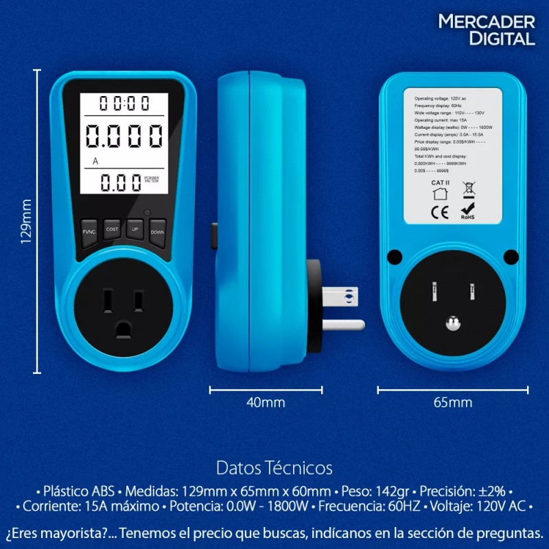 Mercader Digital Medidor Consumo Eléctrico Ahorrador Luz Wattimetro Monitor