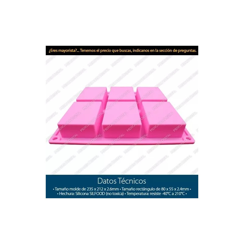 Mercader Digital Molde Silicón 6 Rectángulos / Jabón / Repostería / Velas