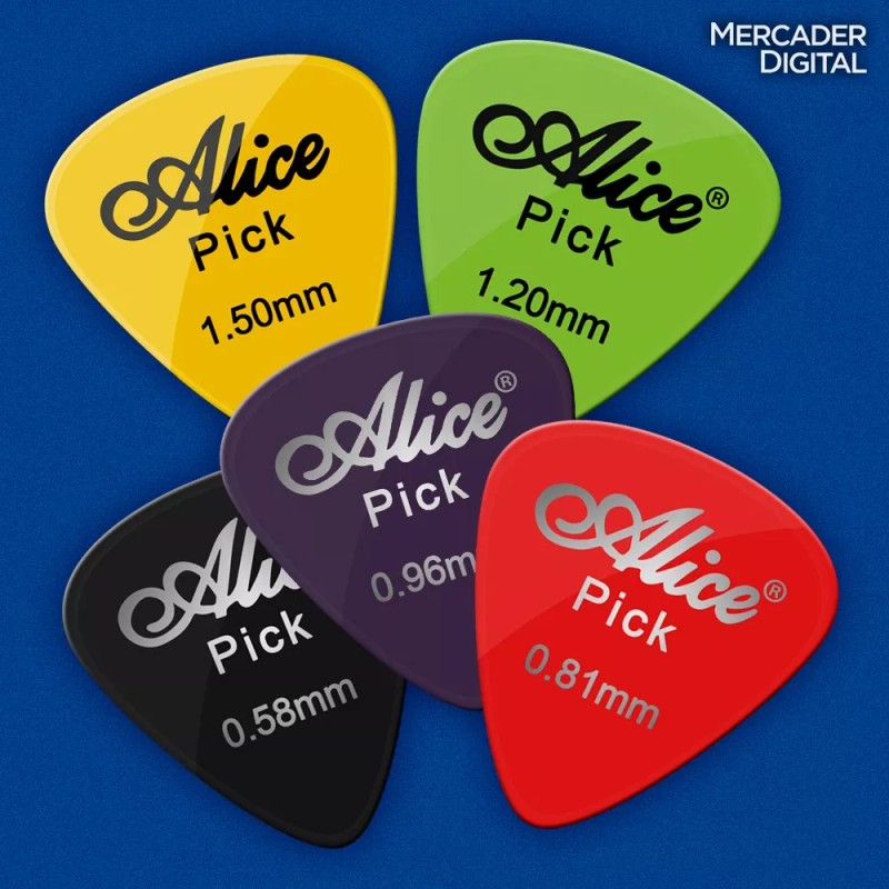 Nuestro set de púas para guitarra ofrece una selección de 6 grosores diferentes y colores surtidos. Hechas con plástico resistente de alta calidad que garantizan una larga durabilidad. Cada grosor proporciona una respuesta sonora única, desde tonos brillantes hasta cálidos.