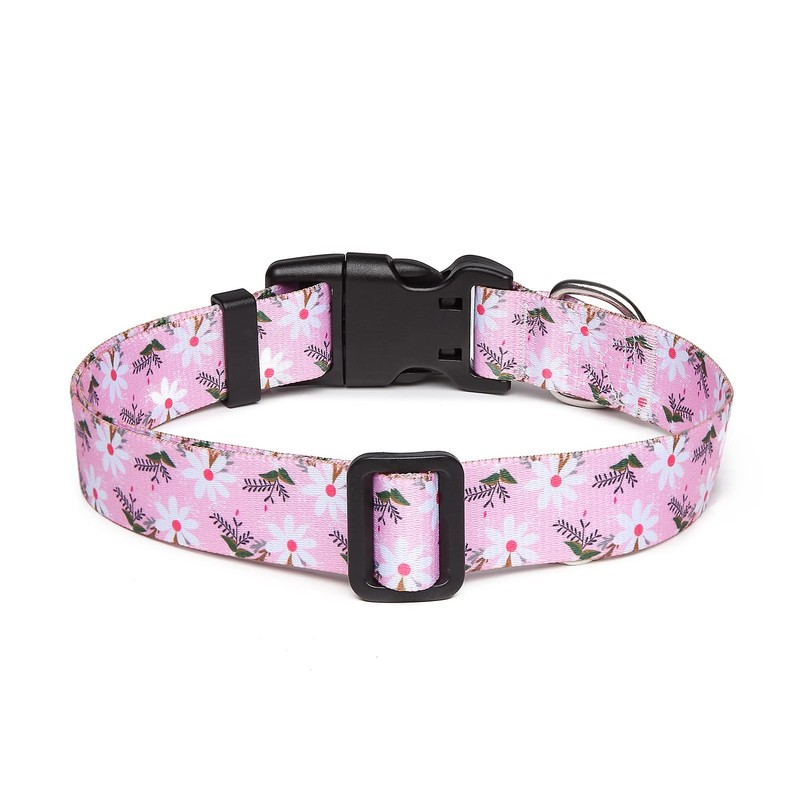Mercano Adjustable Soft Nylon Dog Collar Comfort & Robust Patterned Dog Collar for Small Medium Large Dogs Puppies Cats (S, Pink White Flower)