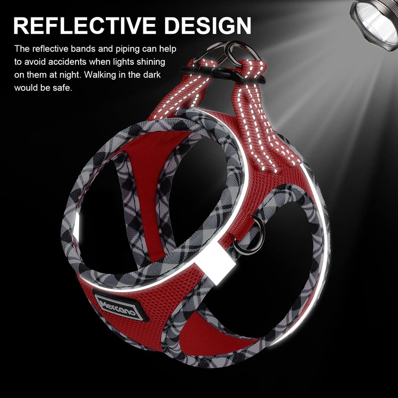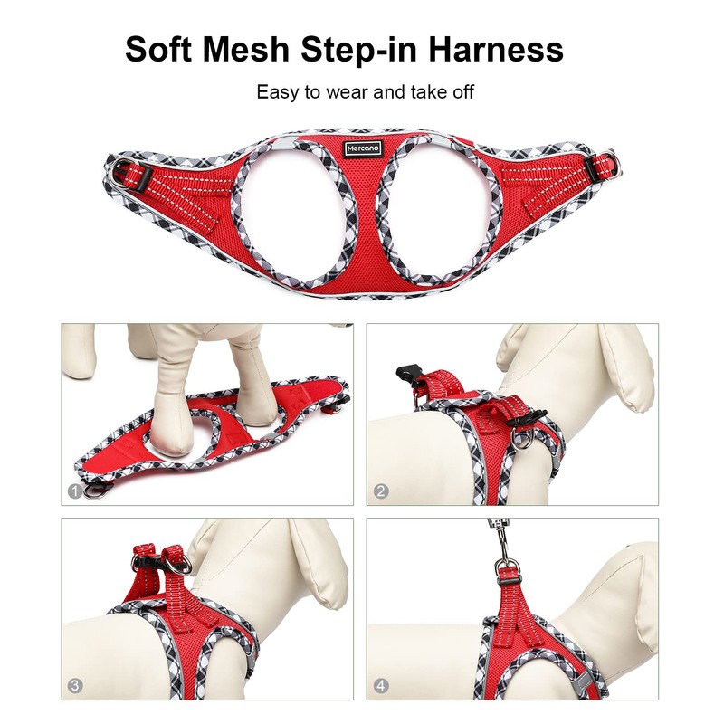 Mercano Soft Mesh Dog Harness and Leash Set, No-Chock Step-in Reflective Breathable Lightweight Easy Walk Escape Proof Vest Harnesses with Safety Buckle for Small Medium Dogs, Cats (Red, S)