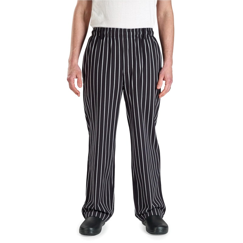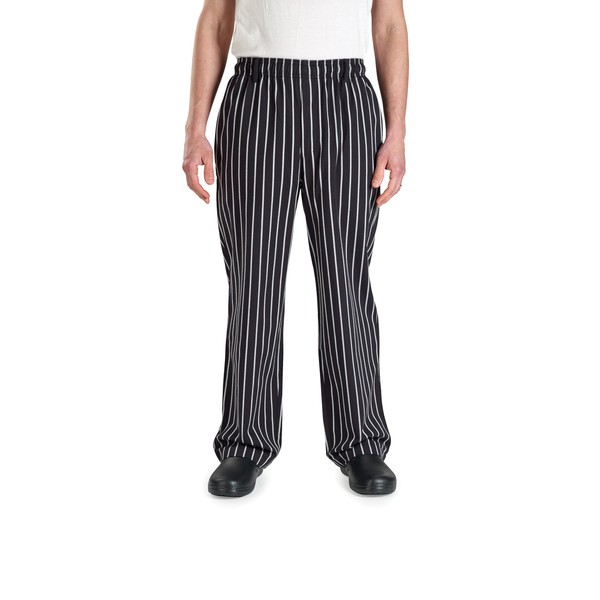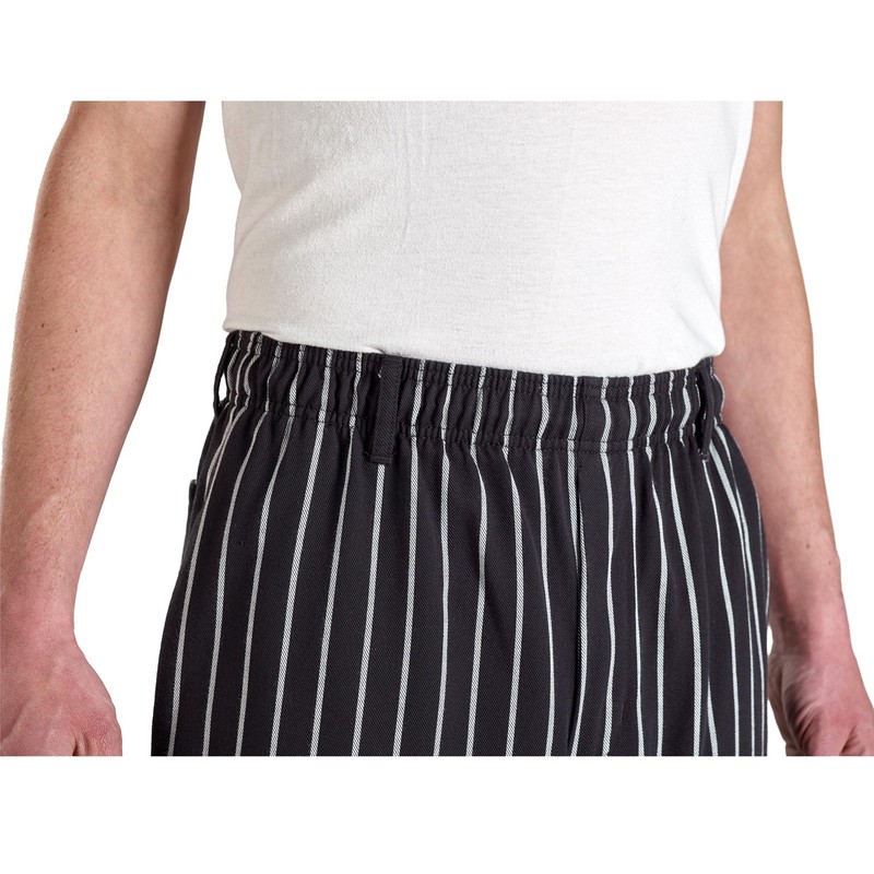 Mercer Culinary M60030BCS1X Millennia Men's Black Cook Pants with White Chalk Stripe, X-Large