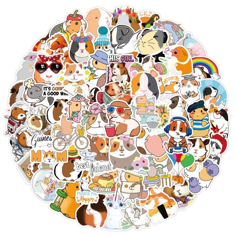 Merchandise Stickers for Laptop (100 Pieces), Gift for Children, Teens, Adults, Boys, Waterproof Animal Guinea Pig Stickers for Water Bottles, Vinyl Stickers for Scrapbooking, Skateboard, Car
