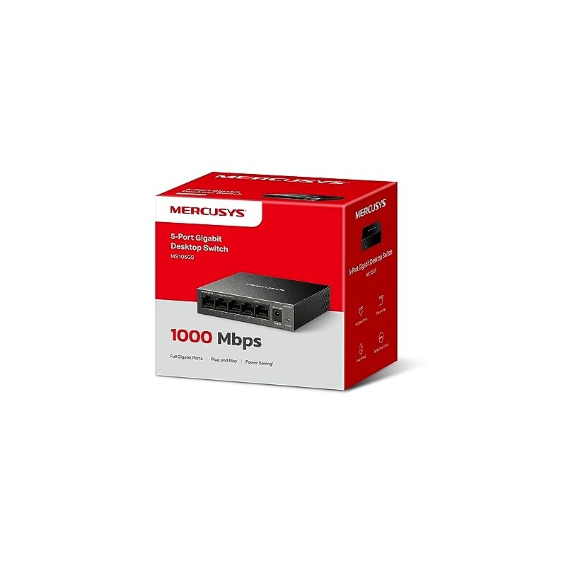 MERCUSYS 5-Port Gigabit Ethernet Desktop Switch (MS105GS) – Plug & Play, Steel Housing, Fanless, Energy-Efficient, Supports Auto-MDI/MDIX – Ideal for Home, Office & Gaming