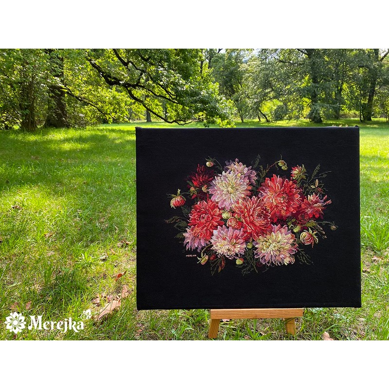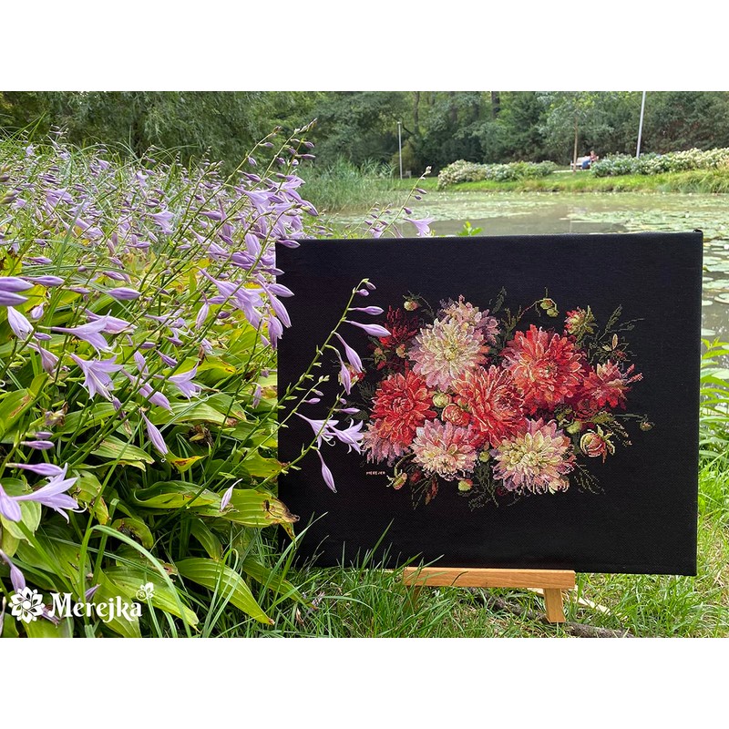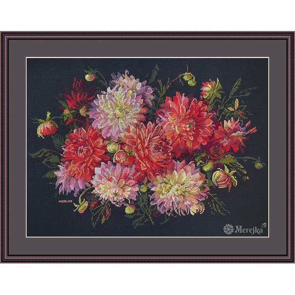 Merejka K-219 Dahlias Counted Cross Stitch Kit, Cotton, Multi-Colour, 30 x 40 cm