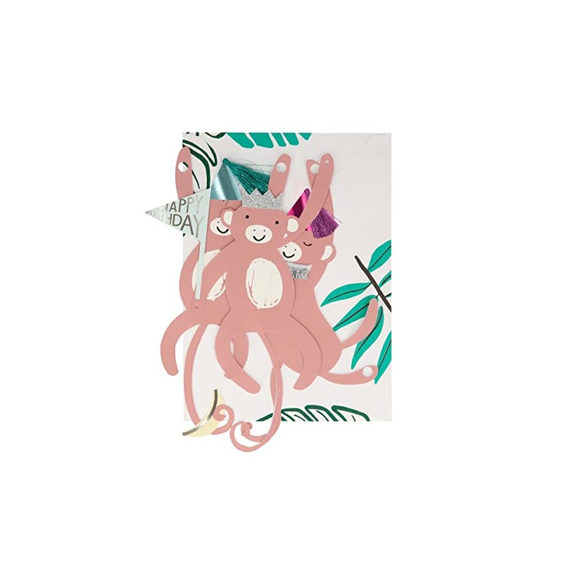 - A fabulous cheeky monkey card, which transforms into a detachable garland, to send birthday wishes to a special birthday boy or girl
