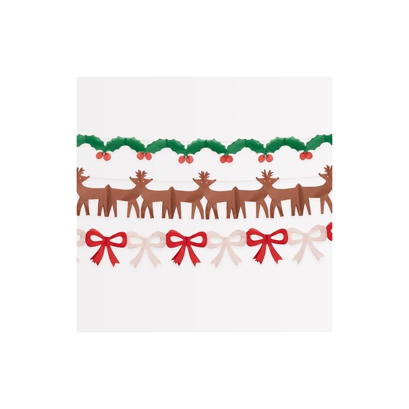 Meri Meri Tissue Paper Classic Christmas Garlands (Pack of 3), 6.5' Strand Including Excess Cord, 3 Unique Strands, Tissue Paper Garlands, Reusable Hanging Christmas Decorations