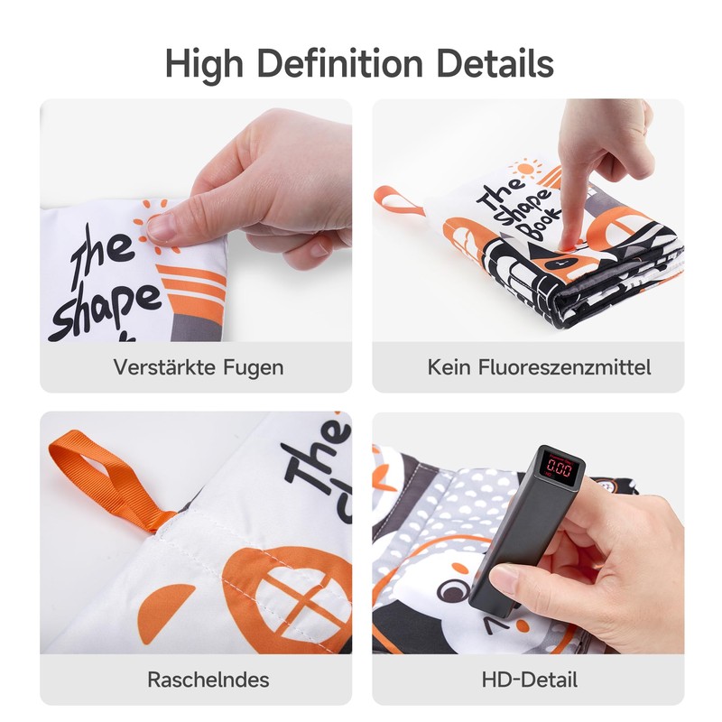 - Safe and easy to clean: black and white book baby made from soft, pollutant-tested fabric, washable at 30°C. Fastening strap for prams and cots.