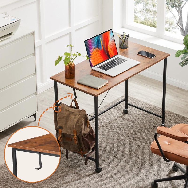 Mericonia 32 Inch Small Rolling Computer Desk with Wheels, Gaming Desk for Small Spaces, Modern Simple Style Table for Home Office, Study Student Writing Table, Rustic Brown