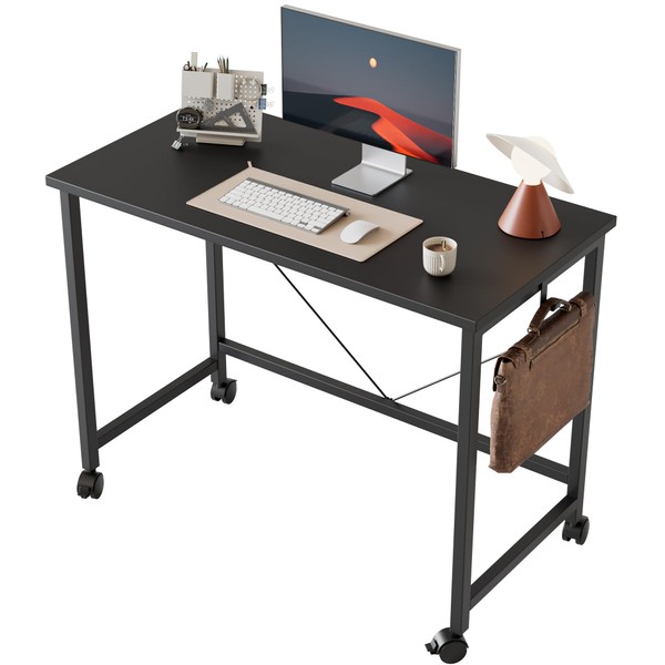 Mericonia Rolling Computer Desk with Wheels, Gaming Desk for Small Spaces, Modern Simple Style Table for Home Office, Study Writing Table (Caster, Black, 32 inch)