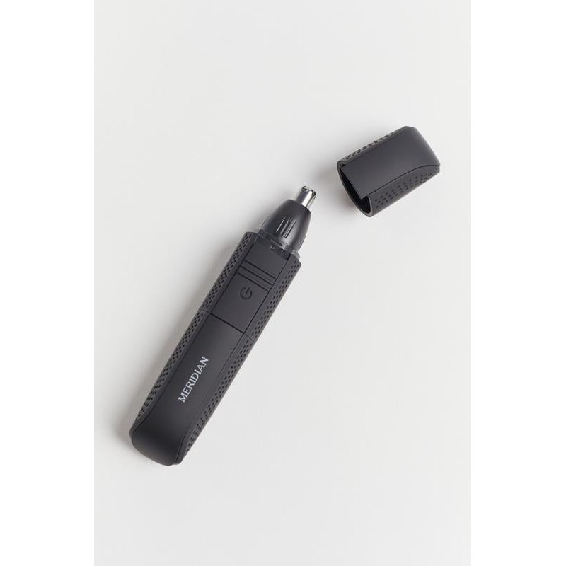 The Meridian The Up-Here Trimmer Onyx features a three-dimensional arch cutter head design with open slits to capture hairs from all directions without hurting your nose or ear cavities, and comes with a cleaning brush, USB cable for charging, and a built-in auxiliary light to make trimming quick and easy. Its blade module is easy to clean and detachable.
