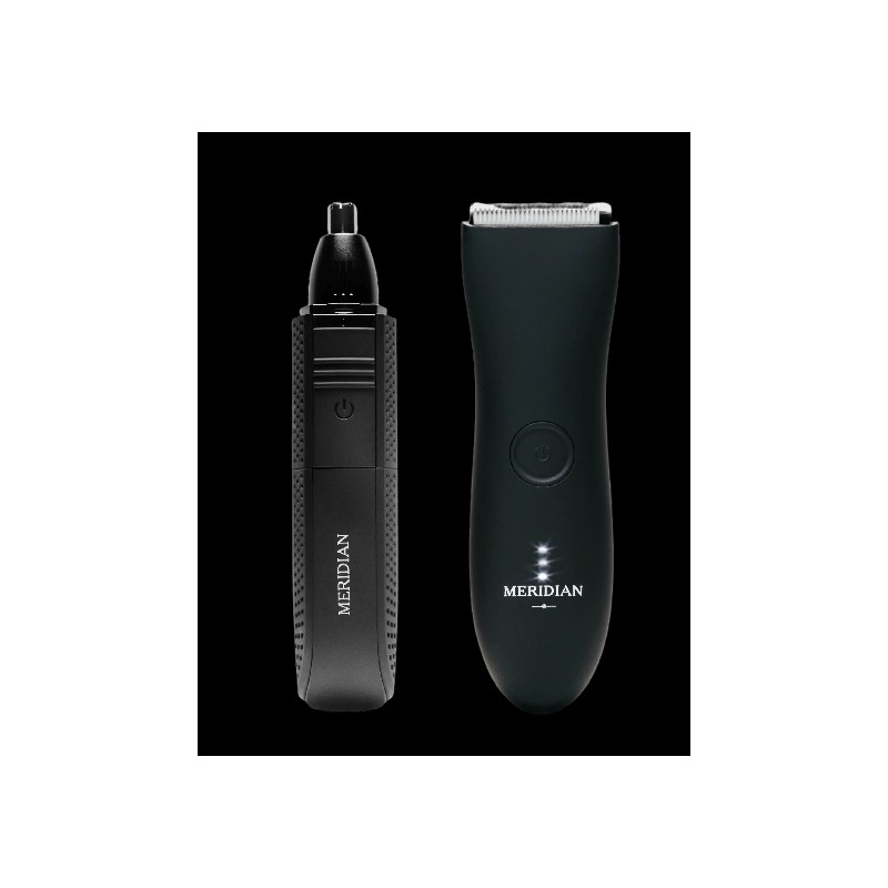 The Meridian Trimmer Onyx Duo Bundle is perfect for those who want to keep their hair, nose, and ear hairs trimmed and neat with waterproof trimmers that are easy to use and clean.