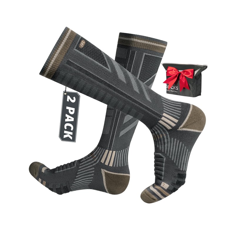 Merino Wool Compression Ski Socks for Men Women, Winter Snowboarding Thermal Socks, Knee High Socks, Size 3-16, (2 Pack)