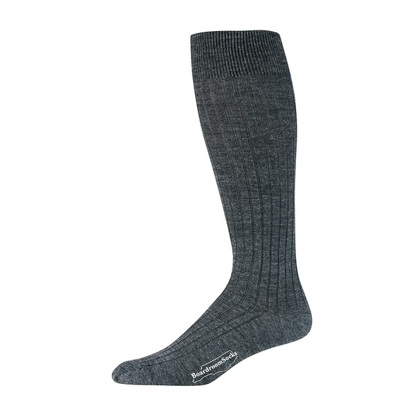 Merino Wool Dress Socks for Men – Over-The-Calf, Ribbed Wool Dress Socks for Men’s Size 8-12 – Comfortable and Breathable Socks with Reinforced Heel and Toe by Boardroom Socks, Grey Heather