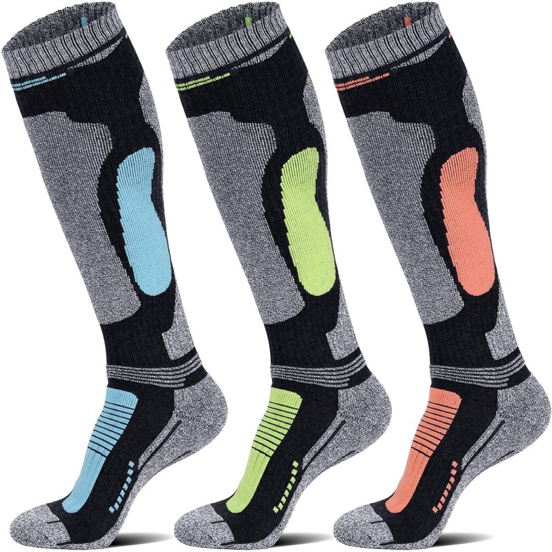 - WINTER KNEE HIGH THERMAL SKI SOCKS: Cold weather and long-term exercise can cause strains and cramps. These thick, high-quality compression socks are specially designed for winter. Thick terry loops are used to minimize the friction between the feet and the boots. The cushioning and padding in the tibial area can provide high comfort and reduce the risk of blisters, pain and vibration, giving you a full range of Bring warmth while protecting your feet.