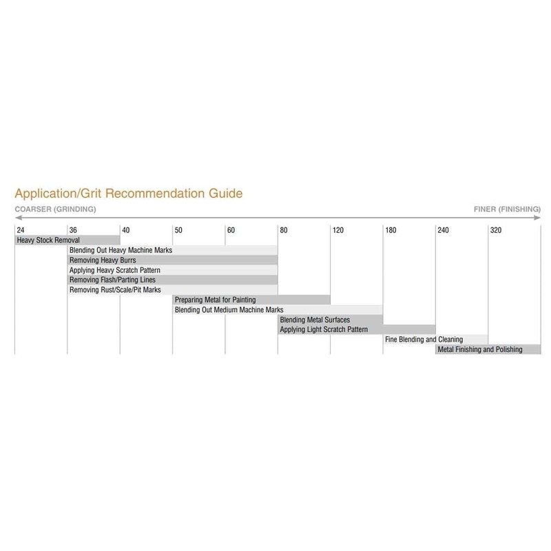 - 60 grit is recommended for removing heavy burrs, removing flash and parting lines and removing rust, scale and pit marks