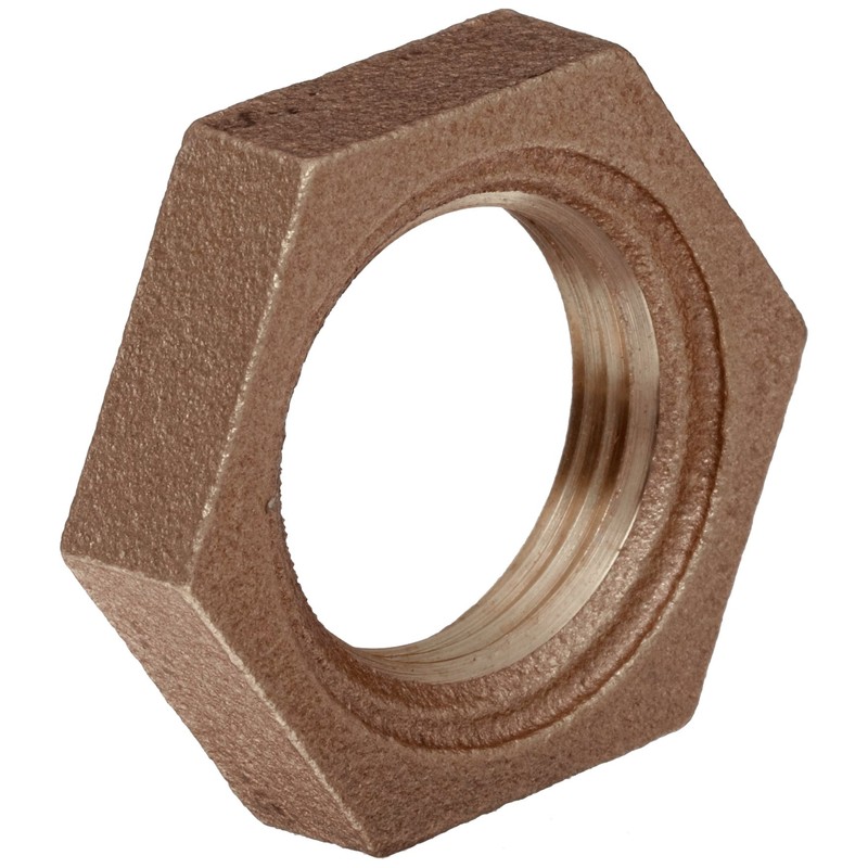This locknut is a class 125 brass pipe fitting with female National Pipe Taper (NPT) threads for locking two male threaded fittings or pipes for stability and reduced vibrations. The locknut has NPT threads for creating a tighter seal than straight threads and a hexagonal shape for increased leverage and use with a wrench during installation and disassembly. It is made of brass, which has greater corrosion resistance than steel, and the material’s relative softness allows for easy installation. This class 125 locknut meets standards ANSI B 1.20.1 and ANSI B 16.15 for quality assurance. Class is a standard relating to tolerance, construction, dimension, and wall thickness, but it is not a direct measurement of maximum working pressure.