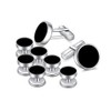 Merit Ocean Men's Cufflinks and Onyx Shirt Buttons Set Black for Men Cufflinks Wedding Collar Shirt Ideal for Work Wear Tailcoat Shirt Tuxedo Suit Business Wear, Brass, onyx, Onyx