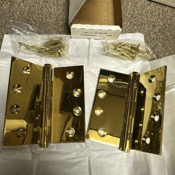 Merit Pair Merit 125P 4x4 Hinge Button Tip Polished Brass 1 pair Hinges