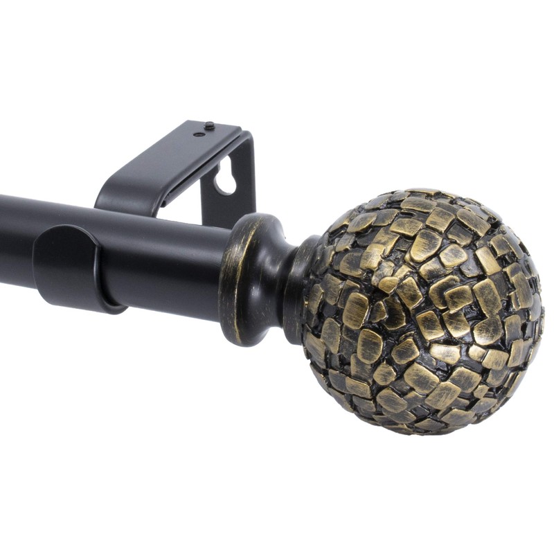 Meriville 1" Diameter Telescoping Single Window Treatment Curtain Rod, 48" to 84", Black rod with Fuso Burnt Gold Finial