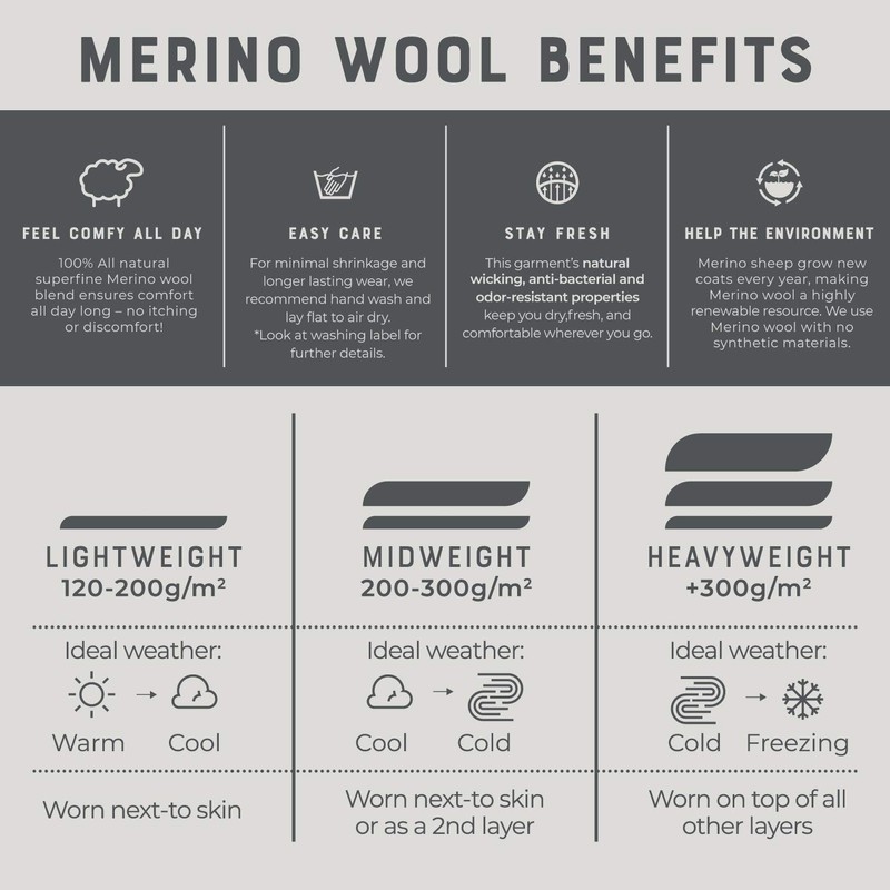 • COOL AND COMFORTABLE: Whether you’re camping, fishing or biking, our wool base layer keeps you warm without restricting movement! Breathable and quick-drying, it wicks sweat away from the skin, so you’re never weighed down by damp, sticky fabric.