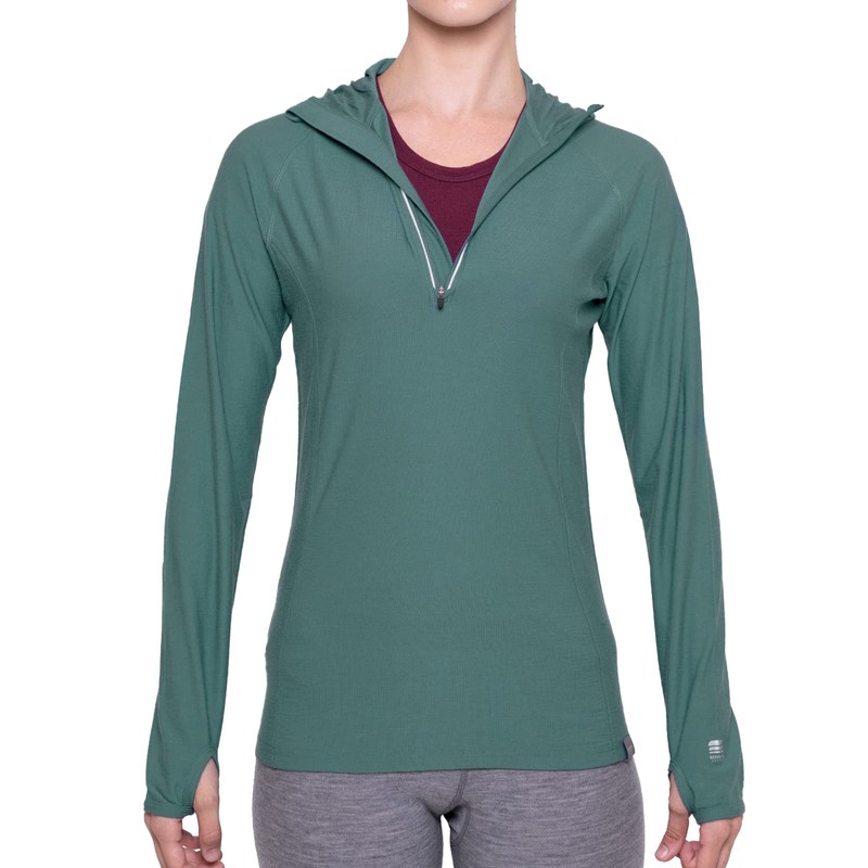 - PACKAGE INCLUDES: 1 – Merino Wools Women’s Base Layer Hoodie Lightweight Long-Sleeve Thermal in Teal / Small | MATERIAL: 16.5 Micron, 100% Merino wool, 190g/m2 | FIT: Fitted