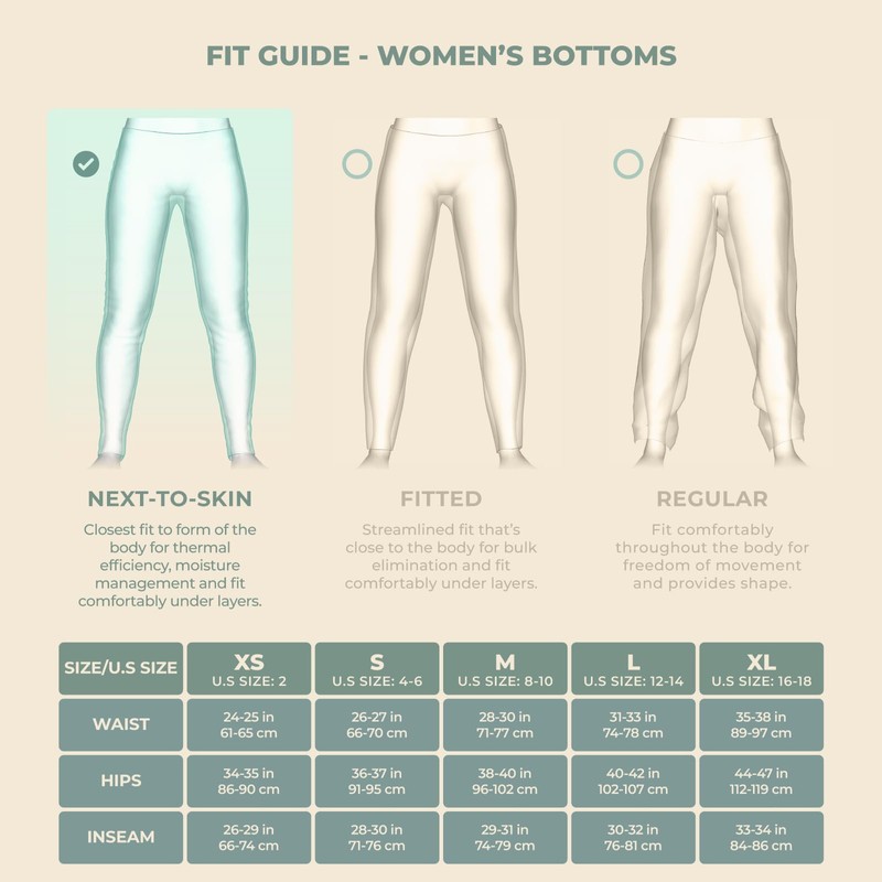• BREATHABLE: Keeping you cool in summer and warm in winter, MERIWOOL’s 250g/m2 weight inter-lock knit Merino wool can be used as a base layer or mid-layer, but won’t weigh you down. EASY CARE: Your women’s base layer legging pants are machine-washable on cold setting and safe to tumble dry on low heat with like colors, so they're ready when you are for your next adventure.