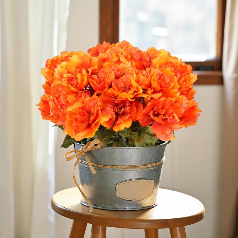 - Package: Each set includes 2 bouquet 14 heads orange peony artificial flowers with rich colors and ultra-realistic petals bring everlasting autumn beauty to your home. No wilting, no fading—just vibrant, lush blooms that look freshly picked.