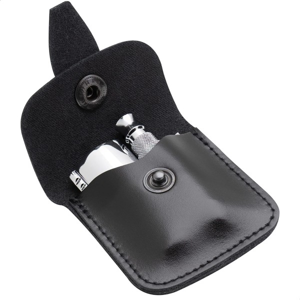 - Small size: three-piece safety razor in the smallest pack size with removable handle. Packaged in a black leather case. For those who want to enjoy the luxury of a neat shave even on minimalist journeys.