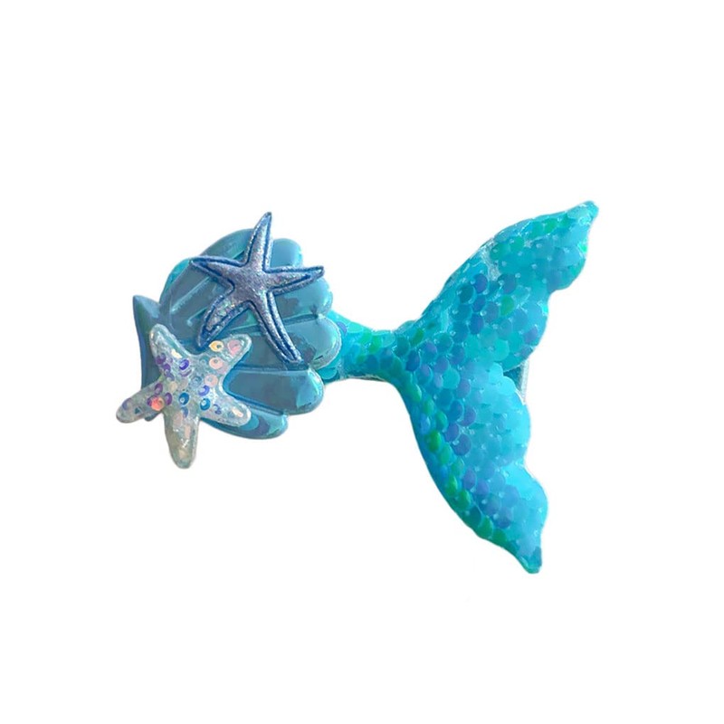- Blue Mermaid Scale Hair Bow Clip For Kids Little Girls