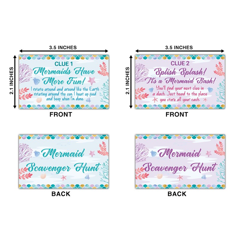 - Fun To Play: Action-packed adventure and laughter for the whole family or teachers and students. This treasure hunt cards get the kids or lovers to find the riddles and leave some treats around the home or one big gift on the last clue. Go fill the box as treasure with gifts to help the kids or lovers spend an unforgettable mermaid birthday party activity. Suitable for 5yo to 99yo.