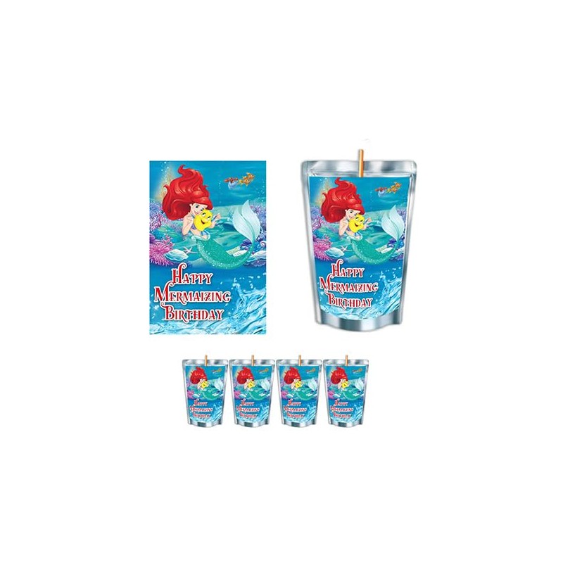 Mermaids Waterproof Juice Pouch Labels - 12-Pack - Fits Most Brands, Perfect for Parties! (Little Mermaizing)